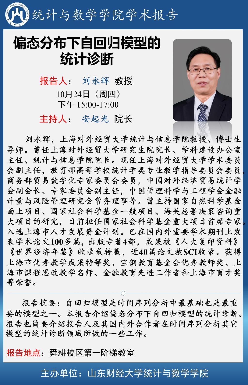 福利姬 学术报告预告-偏态分布下自回归模型的统计诊断