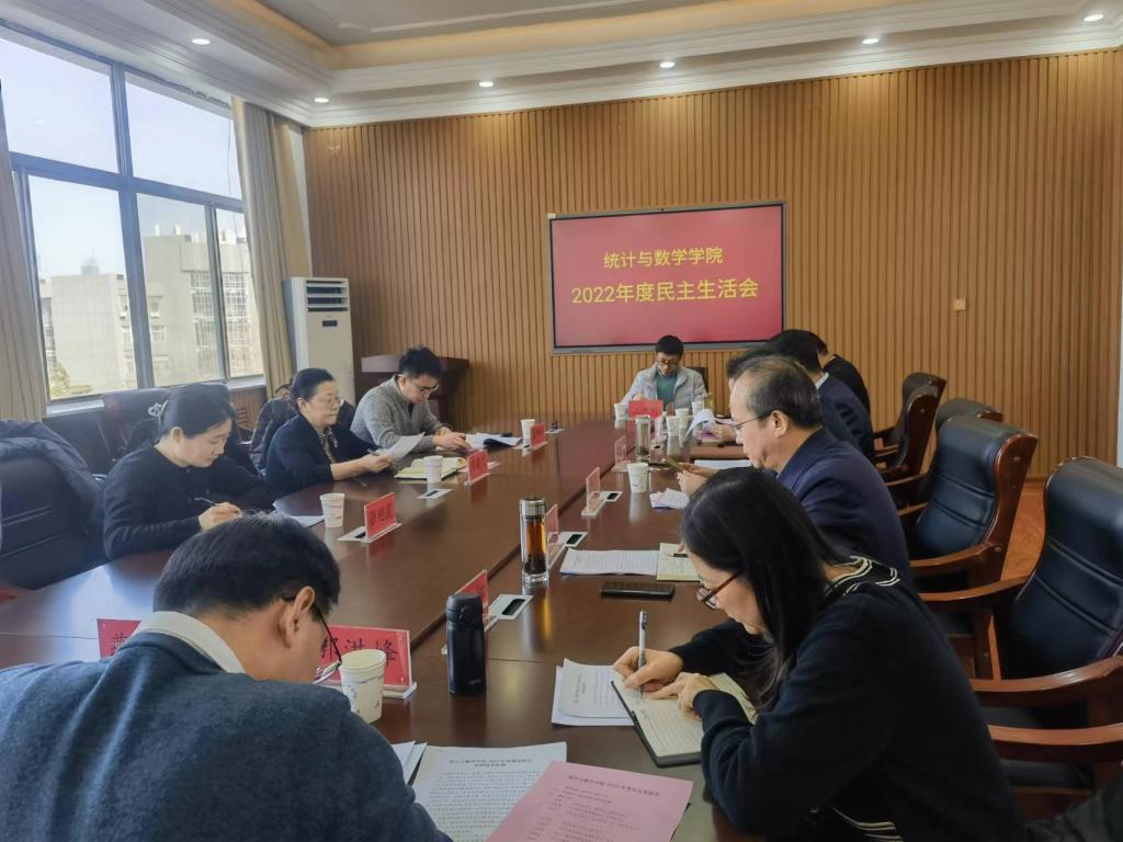 根据《中共山东财经大学委员会关于认真做好2022年度党员领导干部民主生活会的通知》要求,2月13日下午,学院党委在燕山校区1502会议室召开2022年度民主生活会。校党委委员、副校长陈晓兰出席会议并讲话。督导组成员、校党委宣传部副部长张艳霞,督导组成员、校纪委监察专员办公室盛坤宇到会指导。学院党委书记李玉成,党委副书记、院长安起光,党委副书记杨德嵋、孙栋梁,院党委委员、统计交叉科学研究中心主任兼副院长田金方,院党委委员、副院长李娜、郭洪峰、王开科参加会议。会议由李玉成主持。学院专职组织员燕文静列席会议。