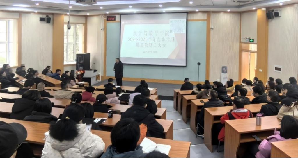 学院院长田金方立足新时代教育强国的建设使命,秉持“开放、包容、创新”的工作理念,紧扣学校“一一三九”发展思路,对学院的发展进行了系统部署。他深刻解读了《教育强国建设规划纲要(2024-2035年)》,并结合学院实际,深入剖析了学院在学科建设、人才工程等方面面临的机遇与挑战。他指出,必须以超前谋划、长远布局的前瞻性思维激活高质量发展内生动力,科学编制“十五五”规划。为实现这一目标,田金方提出四点要求:一是积极探索学科增长点,推动统计学和数学在理论及应用层面的深度交叉融合,培养跨学科复合型人才,切实提升人才培养质量。二是加强有组织的科研,孵化高水平创新团队,以科研创新引领学院高质量发展。三是搭建交流平台,邀请行业专家指导,拓宽师生视野,促进学术交流。四是全面拥抱人工智能,培育教育新质生产力,彰显服务教育强国建设的使命担当。