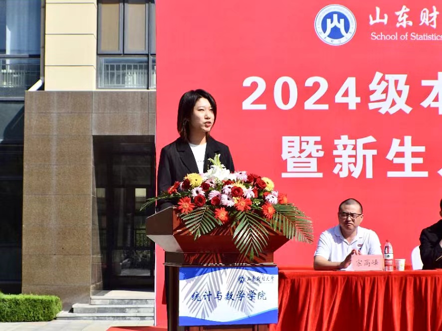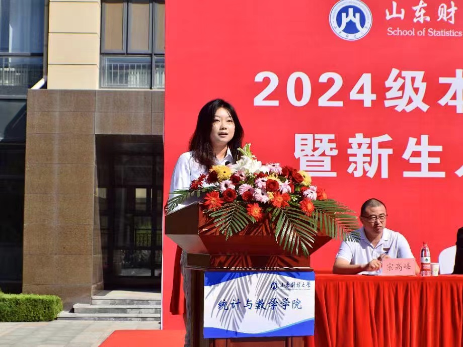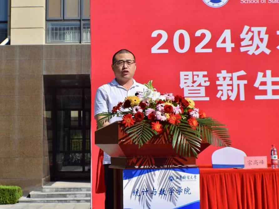 安起光首先代表学院全体师生对2024级新生的到来表示热烈欢迎和衷心祝贺。他指出,青年是时代的晴雨表,肩负着时代赋予的责任,也承载着时代的荣耀。同学们的到来为统数学院增添了新的活力和希望,期待大家的努力都能收获丰硕的成果。他强调,从今天起,同学们拥有了一个新的身份——统数人。学院将不负大家的信任与期待,致力于培养党和国家需要的优秀人才。在这里,同学们将有更多机会接触时代前沿,探索未来发展方向,学院也会搭建培养复合型人才的广阔平台,助力大家全面、多元发展。面对新的起点,安起光向全体新生提出了三点希望:一是要明确目标,志存高远,树立远大的志向和清晰的成长方向,以梦想为动力,持续奋斗;二是要强化能力,适应变革,培养跨学科思维和创新能力,勇于探索未知领域;三是要锤炼意志,保持阳光自信,遇到挑战时要保持乐观心态,积极锻炼身心,努力成为时代的栋梁。