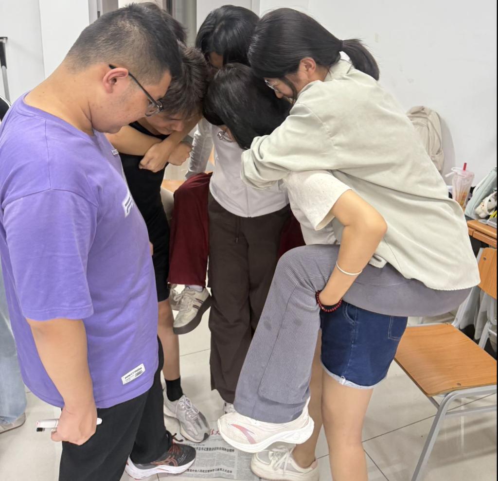 压轴的“同舟共济”游戏将气氛推向高潮,各小组在逐渐缩小的“报纸船”上互相扶持、调整站位,在一次次挑战中增强了团队默契与信任感。活动尾声,多位同学分享感受:有人说“被记住的感觉很温暖”,有人感慨“从拘谨到敞开心扉,自己收获了勇气”。