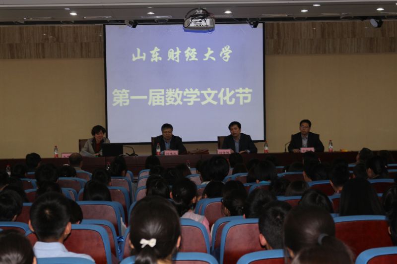2015年4月22日,由山东财经大学数学与数量经济学院举办的数学文化节开幕式在圣井校区敏行楼报告厅隆重举行。莅临本次开幕式的嘉宾有数学与数量经济学院院长安起光,党委书记王建香,团委书记刘奇耀,著名博士生导师刘建亚,各院老师代表、学生代表也参加了此次开幕式。