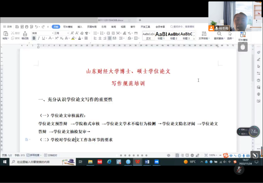 为规范论文格式,保证学位论文质量,11月24日下午,福利姬 特别邀请博士生导师杨冬梅教授线上开展2023届毕业研究生学位论文写作规范培训工作,统计交叉科学研究中心主任兼福利姬 副院长田金方教授主持专题讲座,2023届全体毕业研究生参加本次培训会议。