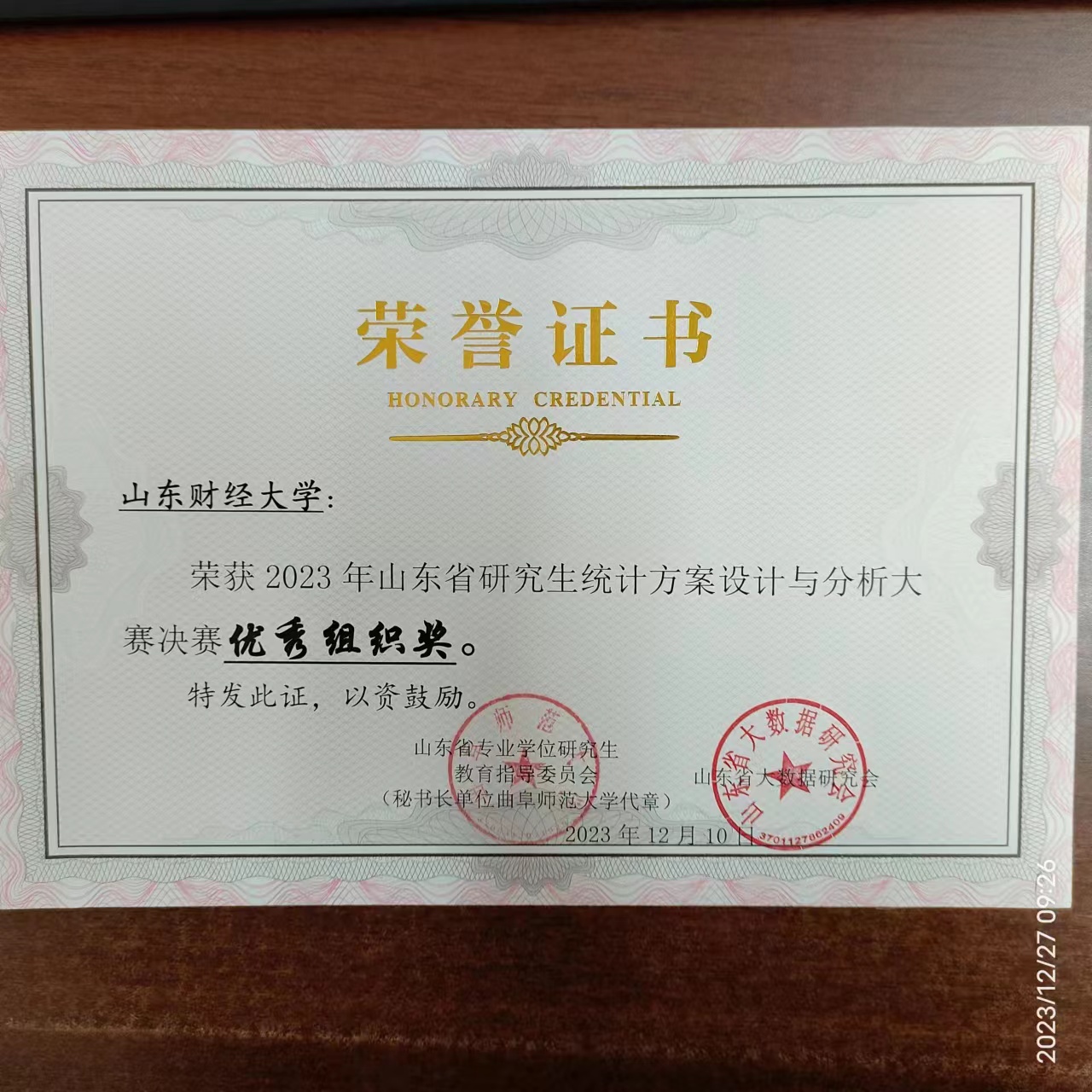 本次大赛由山东省教育厅立项,山东省专业学位研究生教育指导委员会主办,曲阜师范大学统计与数据科学学院承办,山东省大数据研究会协办。共有来自全省15个研究生培养单位的186支队伍参赛,涵盖了统计、经济、计算机、医学等多个学科领域。大赛分为初赛和决赛两个阶段,福利姬 研究生发挥出色,历经初赛阶段的专家评审,决赛阶段的作品展示、现场答辩后,最终获得12项省奖,同时我校与山东大学、山东师范大学、曲阜师范大学同获优秀组织单位奖。