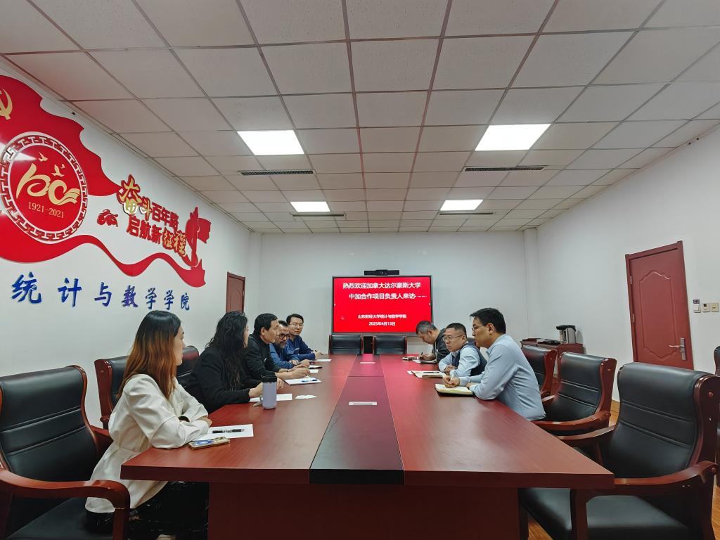 为深入贯彻落实学校与加拿大达尔豪斯大学战略合作精神,进一步全面加快推进统计学(中加合作)项目高质量发展,4月13日下午,加拿大达尔豪斯大学理学院中国项目副主任Shannon Peng、合作办学项目协调员Norovsambuu Tumennasan受邀赴学院会商统计学(中加合作)项目建设事宜。加方教师Ammar Sarham、Jing Zhang、YuanYan及学院院长田金方、中方办学项目协调员戴洪帅参加会议,会议由副院长郭洪峰主持。