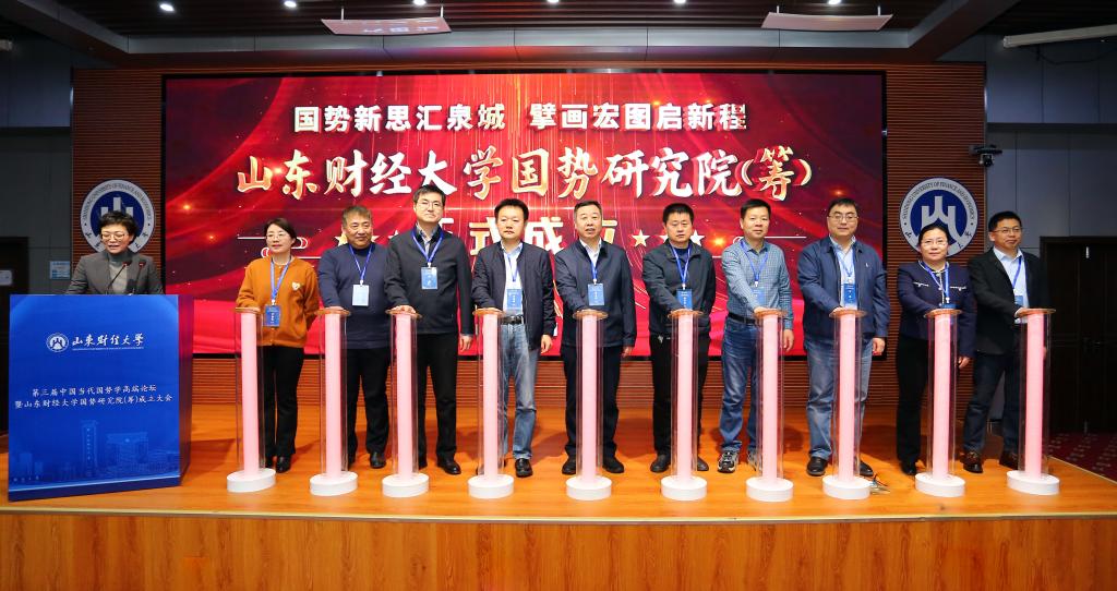 1月17日至18日,第三届中国当代国势学高端论坛暨山东财经大学国势研究院(筹)成立大会在舜耕校区举行。国家统计局原副局长、全国应用统计专业研究生教指委主任委员、中国统计教育学会会长毛有丰,国家统计局原总工程师文兼武,国家统计局统计科学研究所所长闾海琪,国家统计局山东调查总队党组书记、总队长崔刚,厦门大学特聘教授曾五一,中央财经大学原党委书记、江西财经大学讲席教授邱东,浙江财经大学原党委书记李金昌教授,江西财经大学副校长贺丹君,澳大利亚麦考瑞大学Abhay Kumar Singh教授等嘉宾出席会议。校党委书记查玉喜会见来宾并出席会议,副校长王敬政出席开幕式并致辞。院长田金方主持开幕式,党委书记齐杨主持揭牌仪式。