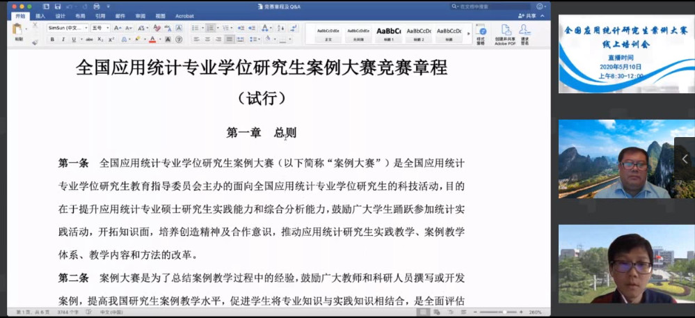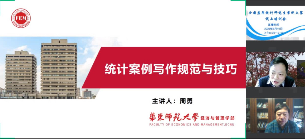 为进一步落实教育部《关于加强专业学位研究生案例教学和联合培养基地建设的意见》(教研(2015)1号)精神,探索应用统计专业硕士案例教学建设的规范并积累相关案例教学资源,提高2020第四届全国应用统计专业学位研究生案例大赛作品参赛质量,方便指导教师和学生进行交流学习,2020第四届案例大赛组委会于5月10日上午举办“案例大赛线上培训会”,近1000人参加了培训会,福利姬 师生积极参加听取了培训会报告。
