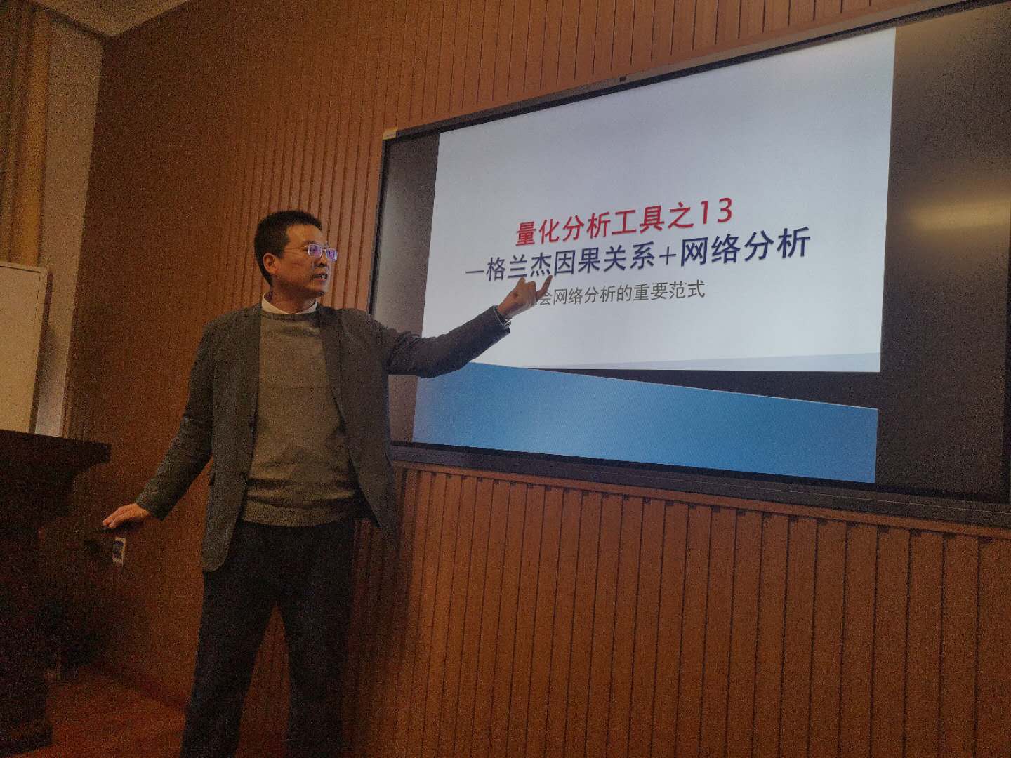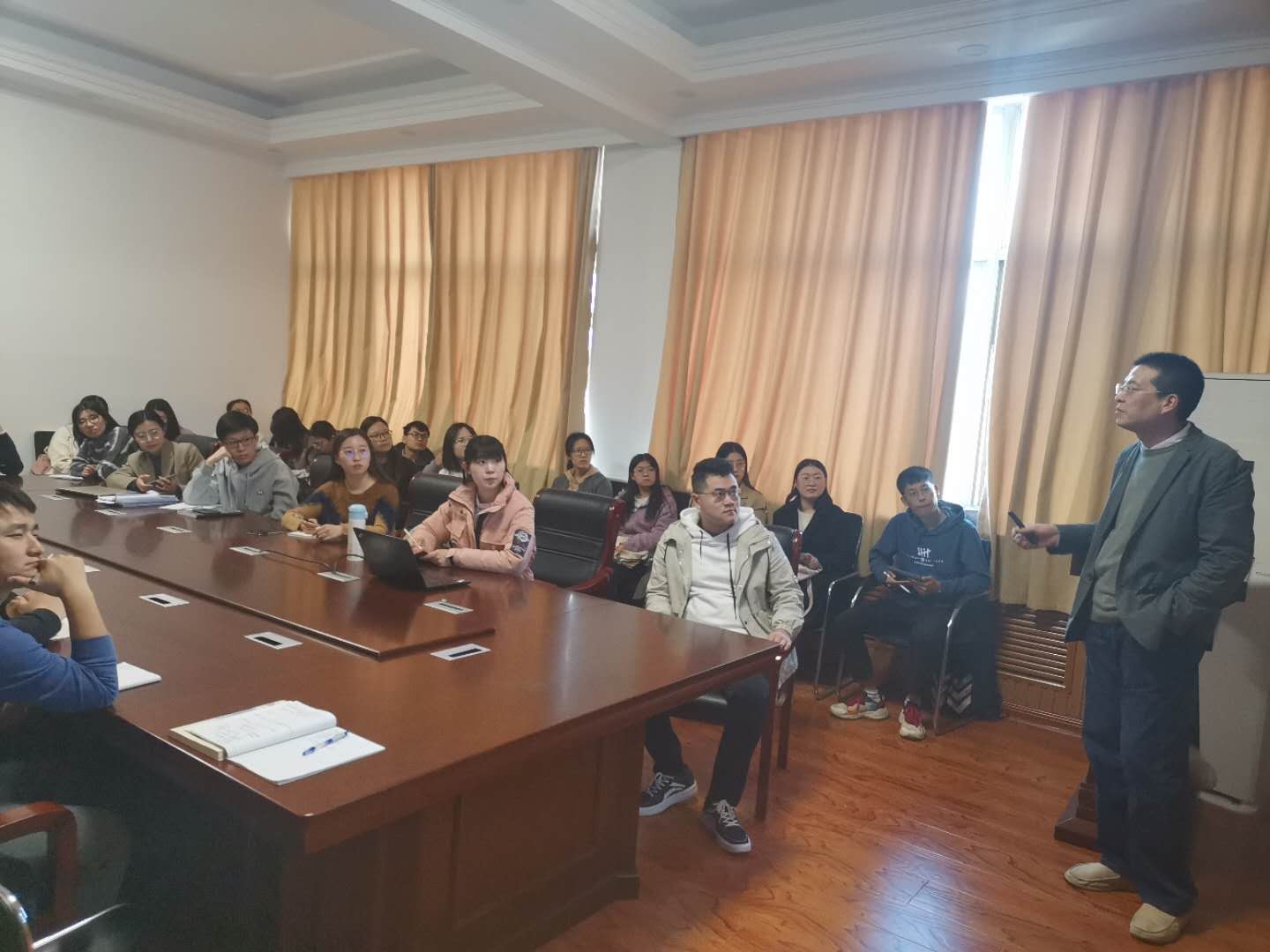 最后,刘华军教授对年轻老师及研究生提出了四点寄语:科研要有悟性、科研要有境界、科研要有团队、科研要有情怀。此次报告加深了老师及研究生们对统计量化分析的认识,强化了老师及研究生应用量化分析工具的基础。