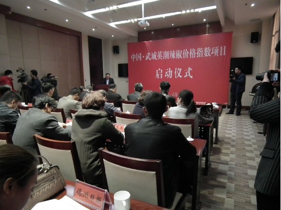 武城英潮辣椒价格指数项目启动仪式在德州市武城县举行,山东财经大学统计学院院长石玉峰、党委书记姜伟、山东省物价检测中心主任王鲁岳、德州市物价局局长于喆、武城县县长张磊、中椒英潮集团公司董事长谭英潮参加了此次启动仪式。