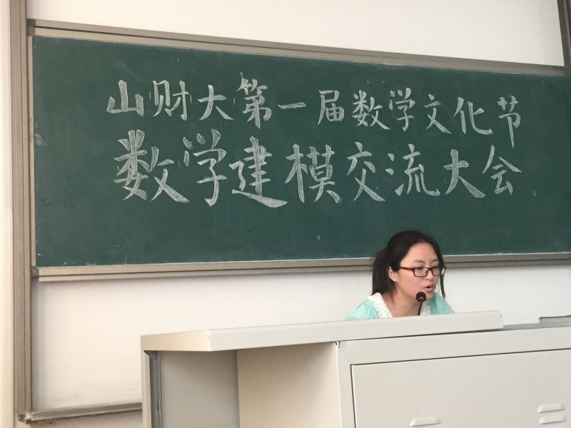 山财大第一届数学文化节之数学建模分享会于2015年5月14日周四下午两点在圣井校区B3205举行,我们有幸邀请到了段凤仪学姐(本科建模国一)、王宝振学长(研究生建模国二)、张艳丽学姐(研究生建模国二)担任演讲嘉宾。首先,段凤仪学姐为我们介绍了数学建模的定义以及基本内容,总结了新手入门数学建模的有效方法,强调与老师沟通交流的重要性,教导我们学会灵活借鉴,切实解开了同学们初步接触数学建模的各种困惑。然后,由王宝振学长十分专业的介绍了几种常用计量统计数学软件,为同学们的学习方向提供了建议。还与我们分享了数学建模应用软件的使用经验。同时用自己的切身经历为同学们增强了信心,最后由张艳丽学姐与我们分享了正式比赛时的经验教训,提供了三天的时间分配方案,提醒我们把握建模主题核心内容,注重团队精神,合理分配工作,向有物理、编程等方面特长的同学寻求帮助也未尝不是好的方法。演讲结束后,同学们针对自己的情况向学姐学长们提出了问题,均得到了满意答复,会场气氛热闹,讨论热烈, 同学们热情高涨。通过这次交流大会,让同学们跟深入更全面地了解了数学建模的内涵及方法,提高了继续研究的兴趣和信心。成功开启了数学建模大赛的序章,为数学文化节注入了一股活力 !