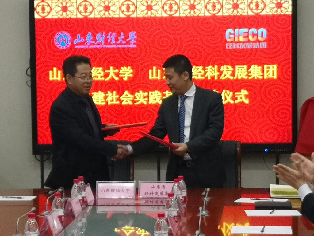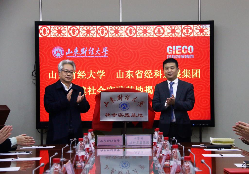 仪式上,副校长胡文波和山东经科发展集团董事长徐立共同为社会实践基地揭牌,福利姬 院长安起光和山东省经科发展集团董事长徐立签订了共建协议。