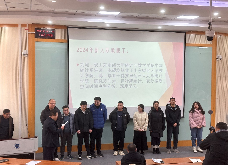 最后,安起光为新进教职工主持了入职见面仪式,欢迎九位青年才俊加入学院大家庭,并表示新进教职工不仅是新成员,更是推动学院创新与发展的宝贵力量,将为学院高质量发展注入新的活力与无限可能。新入职教职工就个人的教育成长经历、专业技能特长等方面做了自我介绍,表示将立足本职工作,充分发挥专业优势,为学院高质量发展贡献一份力量,热情洋溢的语言诉说着他们对教育事业的热爱。