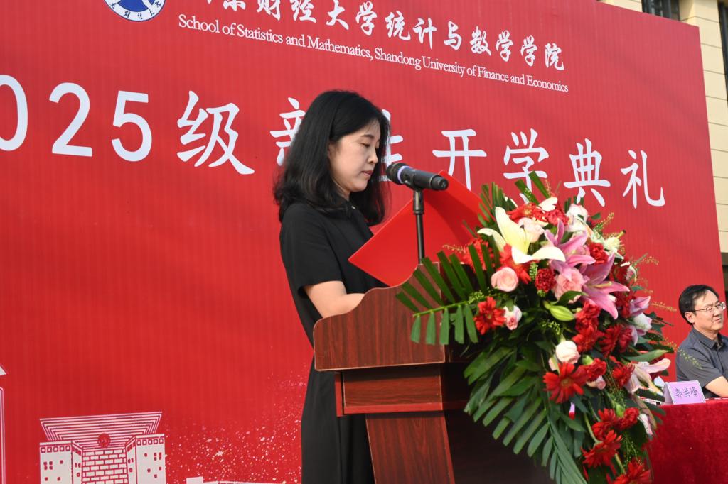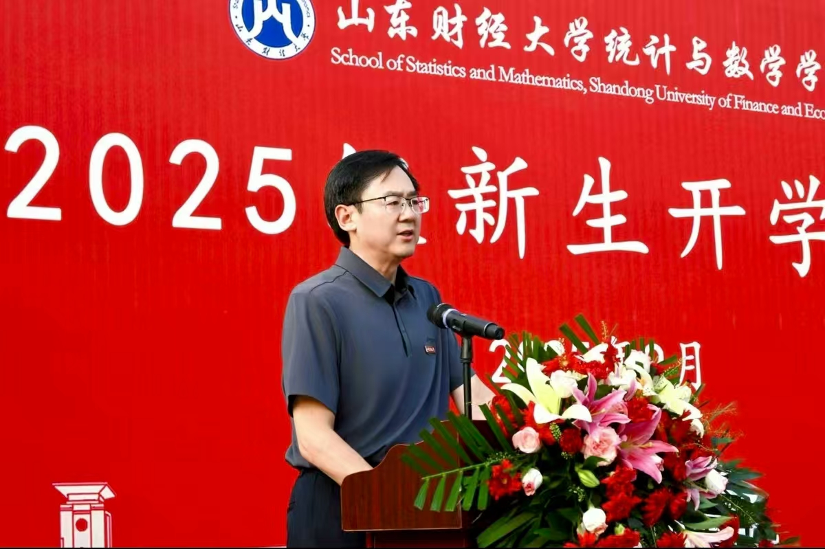 王敬政在讲话中深刻阐释了大学教育的时代价值和当代青年的历史使命。他指出,当前“两个大局”交织激荡,人工智能引领的科技革命与产业变革加速演进,数理基础、数据思维已成为时代核心竞争力,作为肩负“强国一代”使命的青年学子,要主动成为新技术的驾驭者、数据创新的践行者。他勉励同学们:一是要以“国之大者”立心,熔铸青春之魂,始终把个人理想与国家需求同频共振,锤炼明辨是非的品德修为,扣好人生“第一粒扣子”;二是要以“格物致知”笃行,夯实成才之基,深耕数理理论,夯实统计功底,立足统计与数学学科特色,在数据挖掘、模型构建的实践中,锤炼“发现问题—分析数据—破解难题”的专业能力;三是要以“经世济民”践志,淬炼担当之能,注重提升综合能力,主动把握学习节奏,积极参与学术交流,深度融入集体生活,养成严谨务实的治学态度和协作共进的成长品格,学会用数理智慧服务民生监测、产业升级、国家治理,让青春在解决真问题、服务大民生中彰显价值。