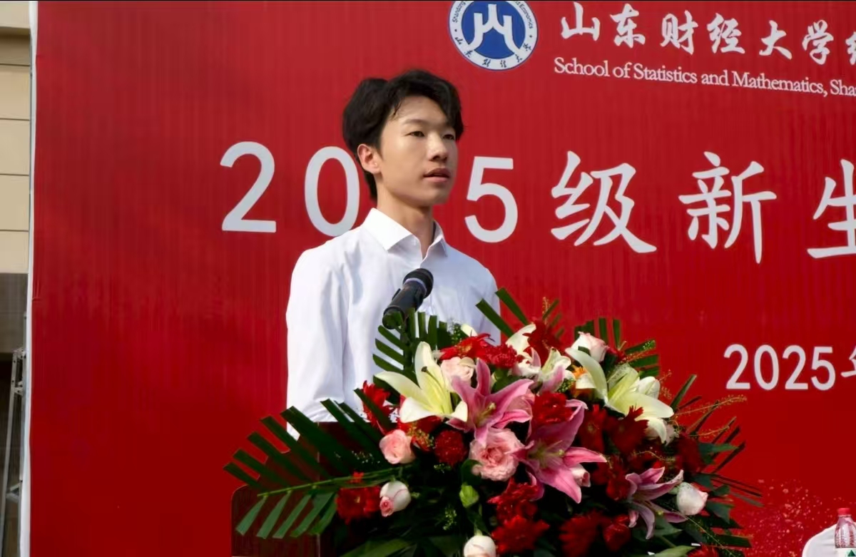 新生代表2025级统计学1班柴溪蔓在发言中表达了对大学生活的热切期待和郑重承诺,感谢师长与学长们的关怀指引,并表示将坚定理想、勤学不辍,努力成长为有理想、有本领、有担当的时代新人。