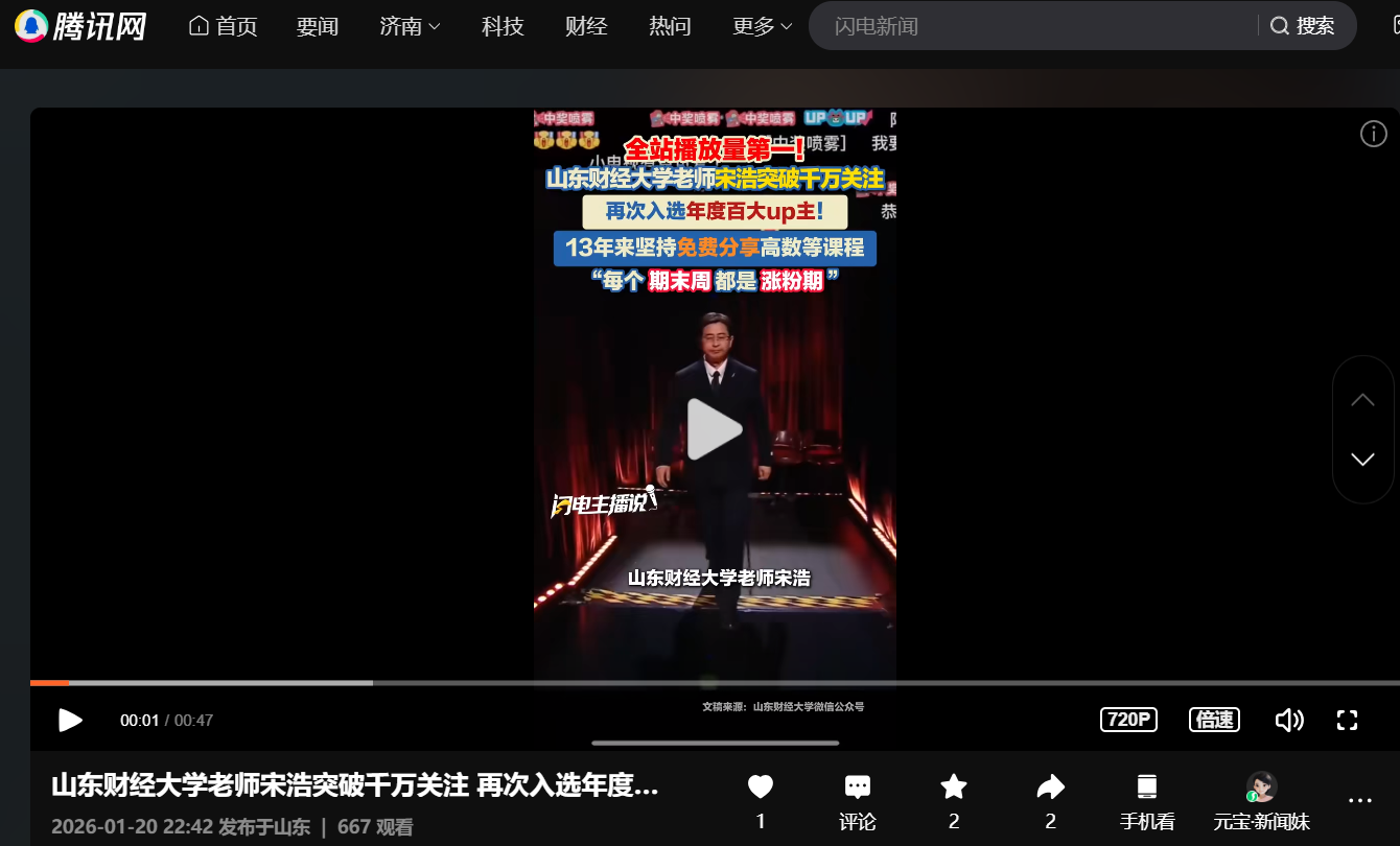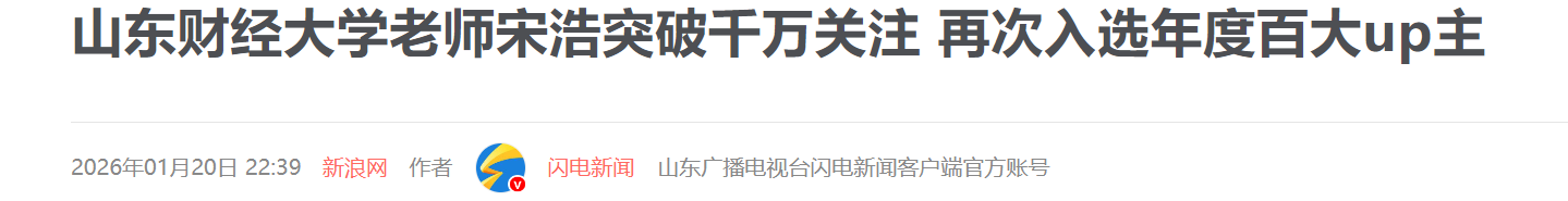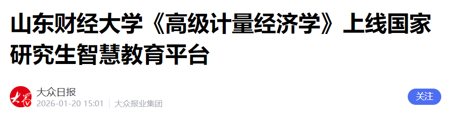 报道重点聚焦三大领域成果。一是科研平台建设迈出坚实一步。学院正式启动国势研究院的筹建工作,标志着我校成为继江西财经大学之后,全国首批筹建国势研究院的财经类高校。研究院立足 “为国家谋势、为经济测度、为发展建言”的定位,旨在系统研判国家发展态势,科学评估宏观经济运行,打造融合理论研究、政策咨询与人才培养的高水平学术平台。二是两门核心课程取得标志性突破。《高级计量经济学》获评山东省优质课程,并成功跻身国家“研究生智慧教育平台”上线课程行列,与中央财经大学、对外经济贸易大学的同类课程同步开放、资源共享;《微积分II》成功入选第三批国家级一流本科课程。双课并进,充分体现了学院在教学质量与课程建设上的深厚功底与扎实成果。三是教师影响力持续彰显。宋浩老师凭借其广受欢迎的网络课程,再度获评“B站百大UP主”。这一荣誉不仅印证了宋浩老师个人在跨平台知识传播中的强大影响力,也集中体现了学院教师运用新媒体创新育人模式、引领教学变革的扎实实力。