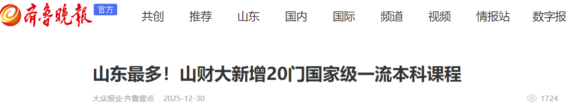 近日,学院在科研平台建设、课程创新与教师发展等方面取得的一系列扎实成果,获得社会与媒体广泛关注。新浪网、腾讯网、中国教育在线、澎湃新闻、大众日报、齐鲁晚报、闪电新闻等多家主流媒体纷纷进行报道,生动呈现了学院服务国家战略的智库担当、推动教学改革的创新实践以及辐射广泛的育人影响力,彰显了学院锐意进取、贡献社会的崭新风貌。