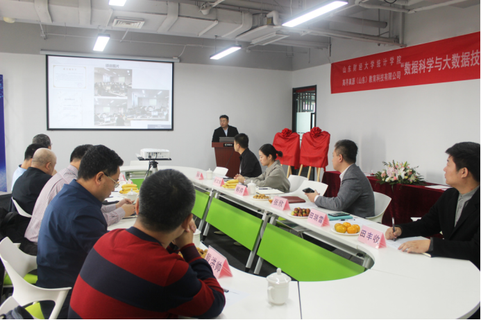 为进一步强化校企合作办学,推动产学研深度融合,2020年10月16日,山东财经大学统计学院与高寻真源(山东)教育科技有限公司举办关于“数据科学与大数据技术”“统计学专业”校企合作签约仪式。山东财经大学统计学院党委书记郑磊、院长李国锋、党委副书记赵世民、副院长裴海峰、实验室主任任文东、数理统计系副主任戴洪帅以及高寻真源(山东)教育科技有限公司执行董事张欣、副总经理韩帅、副总经理徐冉、运营管理中心经理田瑞雪、技术研发中心主管田丰收、售前工程师杨文雅等参加了此次签约仪式。仪式由高寻真源(山东)教育科技有限公司副总经理徐冉主持。