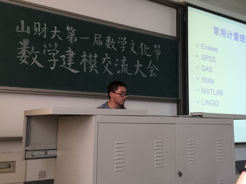 山财大第一届数学文化节之数学建模分享会于2015年5月14日周四下午两点在圣井校区B3205举行,我们有幸邀请到了段凤仪学姐(本科建模国一)、王宝振学长(研究生建模国二)、张艳丽学姐(研究生建模国二)担任演讲嘉宾。首先,段凤仪学姐为我们介绍了数学建模的定义以及基本内容,总结了新手入门数学建模的有效方法,强调与老师沟通交流的重要性,教导我们学会灵活借鉴,切实解开了同学们初步接触数学建模的各种困惑。然后,由王宝振学长十分专业的介绍了几种常用计量统计数学软件,为同学们的学习方向提供了建议。还与我们分享了数学建模应用软件的使用经验。同时用自己的切身经历为同学们增强了信心,最后由张艳丽学姐与我们分享了正式比赛时的经验教训,提供了三天的时间分配方案,提醒我们把握建模主题核心内容,注重团队精神,合理分配工作,向有物理、编程等方面特长的同学寻求帮助也未尝不是好的方法。演讲结束后,同学们针对自己的情况向学姐学长们提出了问题,均得到了满意答复,会场气氛热闹,讨论热烈, 同学们热情高涨。通过这次交流大会,让同学们跟深入更全面地了解了数学建模的内涵及方法,提高了继续研究的兴趣和信心。成功开启了数学建模大赛的序章,为数学文化节注入了一股活力 !